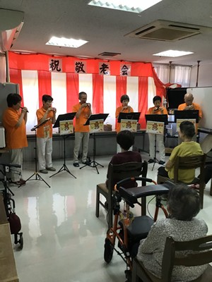 今年の「ケアハウス敬老のお祝い会」は、「オカリナグループ楽音(ラドン)」さんに演奏会をお願いしました。