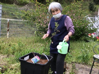 ケアハウスの裏庭に、ブルベリーの苗をご利用者さんと一緒に植えました。