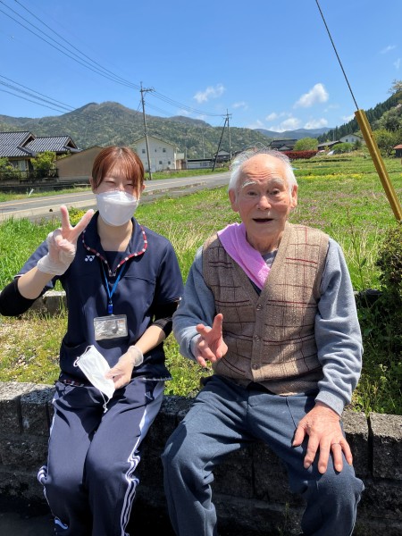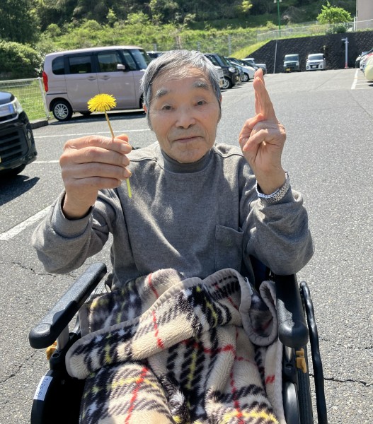 リハビリの途中に、外へ出て日向ぼっこです。