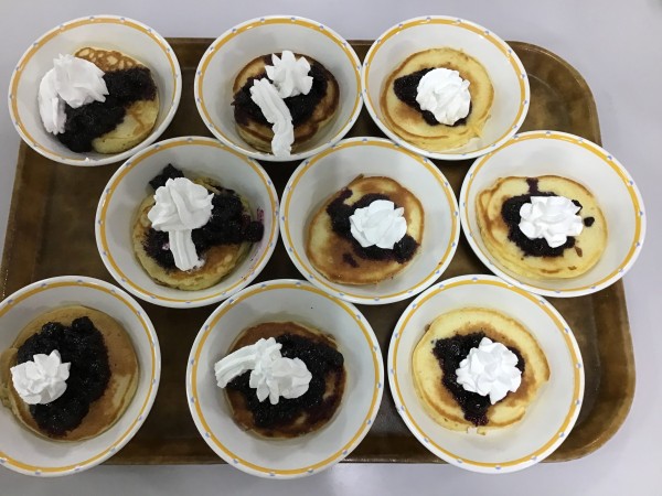 いただきものと施設内で採れたブルーベリーがたくさんあったのでジャムにしてトッピングとして使いました。