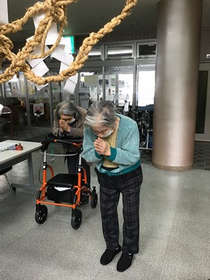 施設の中で皆さんが新年の挨拶と一年の健康を祈られました。