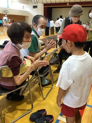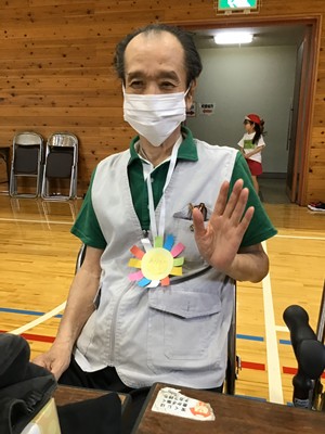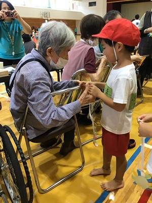 一緒に玉入れに参加され、園児からメダルを首にかけてもらい交流を楽しまれました。