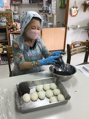 この時期には、毎年皆さんで「おはぎ」を手作りします。
