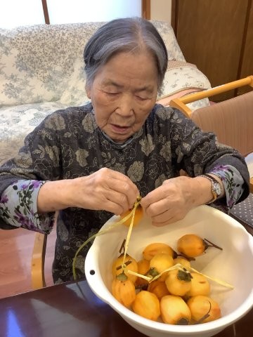 「作った事あるけど忘れたわ」とのご利用者の言葉。それでも何とか形になる柿が出来上がりました。