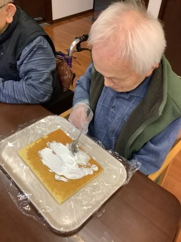サンタさんへのプレゼントも込めてケーキ作りを皆さんと一緒に仕上げた後は、クリスマスのイベント・・・。