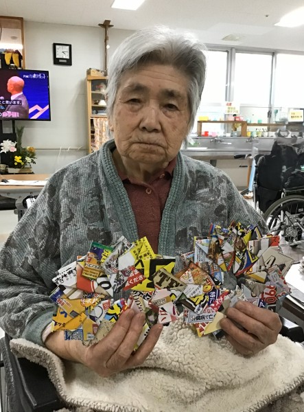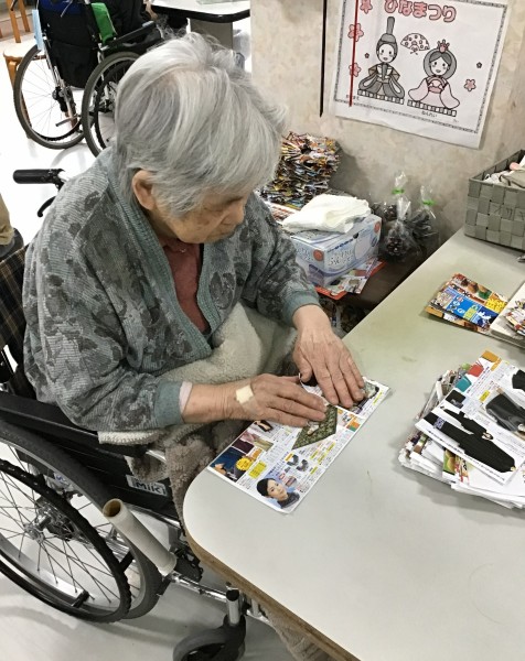 ご利用者がチラシで鍋敷きを沢山作られ、苑や職員で活用させていただいていますが
