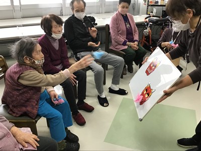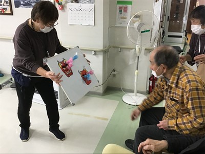 今年のケアハウス節分祭は、「ひょっとこ踊りの奉納」を真似て行いました。