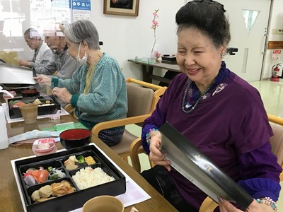 今年は桜の開花より早い時期にでしたが、皆さんで一足先に「お花見弁当を楽しむ会」を行いました。