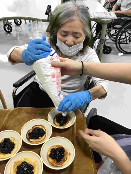 いただきものと施設内で採れたブルーベリーがたくさんあったのでジャムにしてトッピングとして使いました。