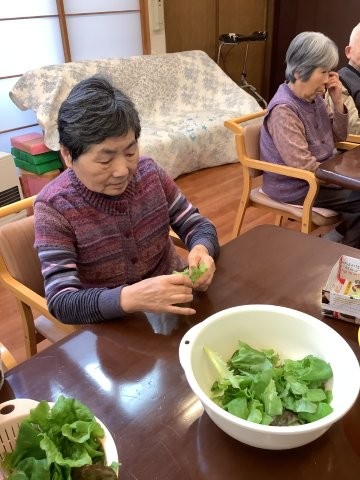 ご家族から葉物野菜を頂いたので皆さんで昼食つくりに挑戦。何の料理がええかなあ・・と。