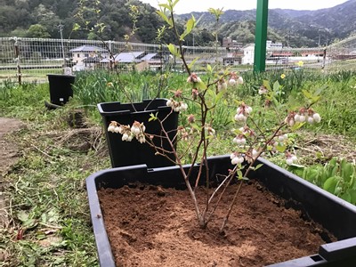 ケアハウスの裏庭に、ブルベリーの苗をご利用者さんと一緒に植えました。