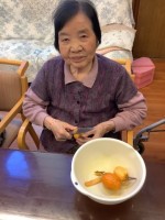 柿が沢山届いたので干し柿作りをしました。「作った事あるけど忘れたわ」とのご利用者の言葉。それでも何とか形になる柿が出来上がりました。干し柿ができるのが楽しみです。