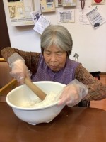 2月14日、世間で言われるバレンタインデーにちなんで仁の里でもお菓子作りをしました。さつまいもを使った一口サイズのスイートポテト、メロンパンを思わせるようなアーモンドクッキー・・・混ぜるのに一苦労しながらも皆様一生懸命作って下さいました。「味も形...